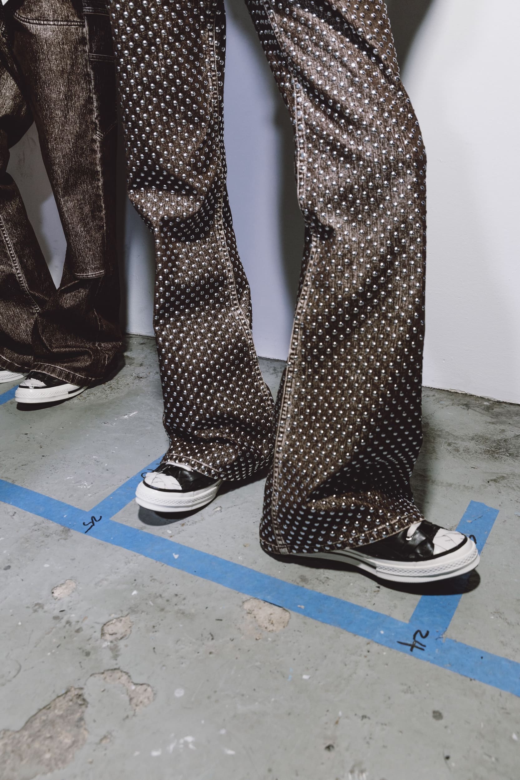 Lorsque la mode s’en empare, la Chuck Taylor change de registre. À Paris, en janvier 2026, lors du défilé Automne/Hiver 26 d’EGONLAB, elle apparaît dans la collection LAZARUS. Pensée autour de l’idée de renaissance, la collection marque une nouvelle étape pour les deux créateurs, Florentin Glémarec et Kévin Nompeix, fondateurs de la marque.