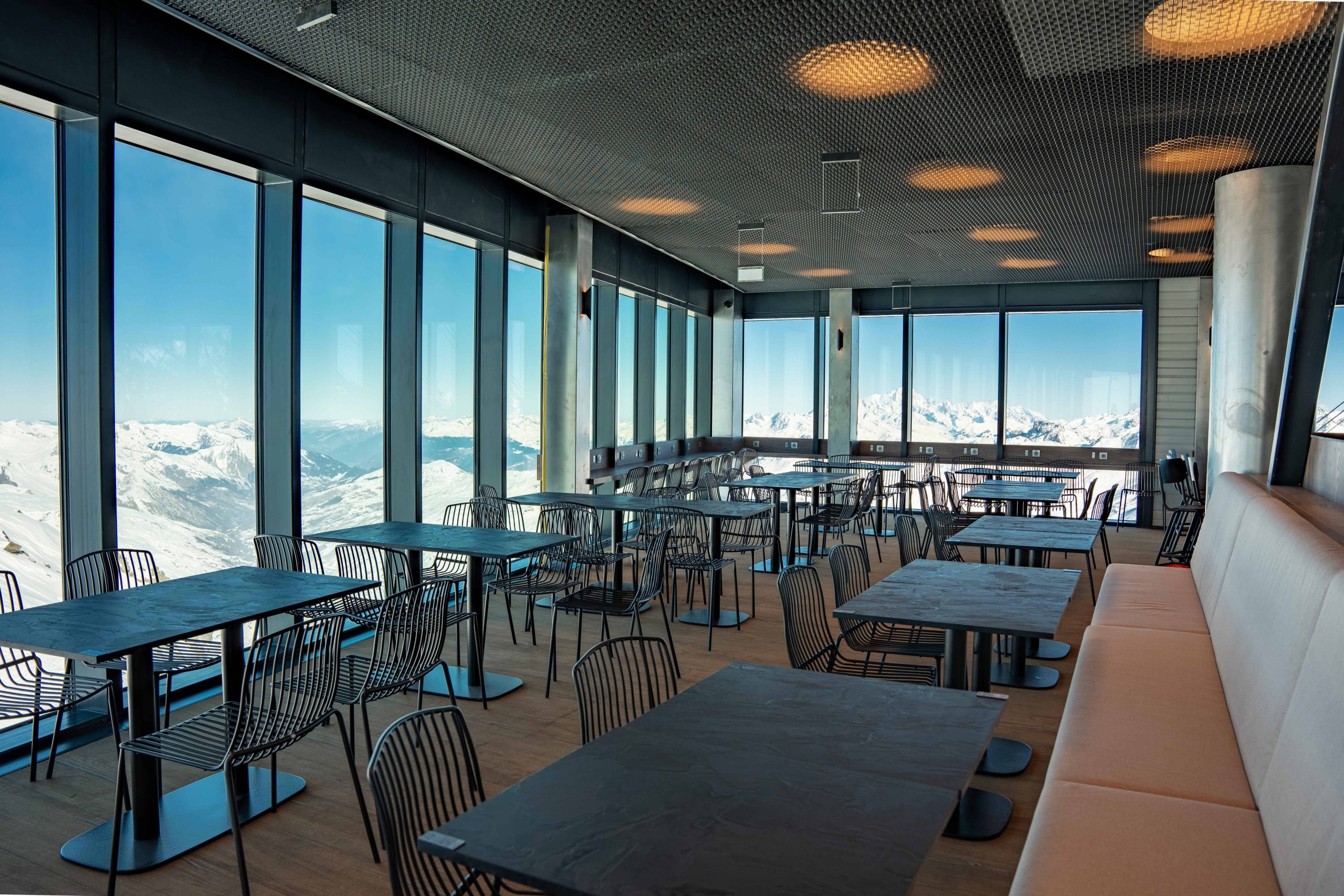 On y trouve un rooftop bar doté de l’une des plus belles vues des Alpes, et un restaurant où l’on sert des snacks et de délicieux bocaux confectionnés dans la vallée avec des produits locaux. On peut aussi profiter des expositions d’art contemporain, rareté à cette altitude, que propose le très chouette espace boutique/galerie. Apprécie-t-on plus ou moins l’art contemporain lorsque le cerveau reçoit moins d’oxygène ?