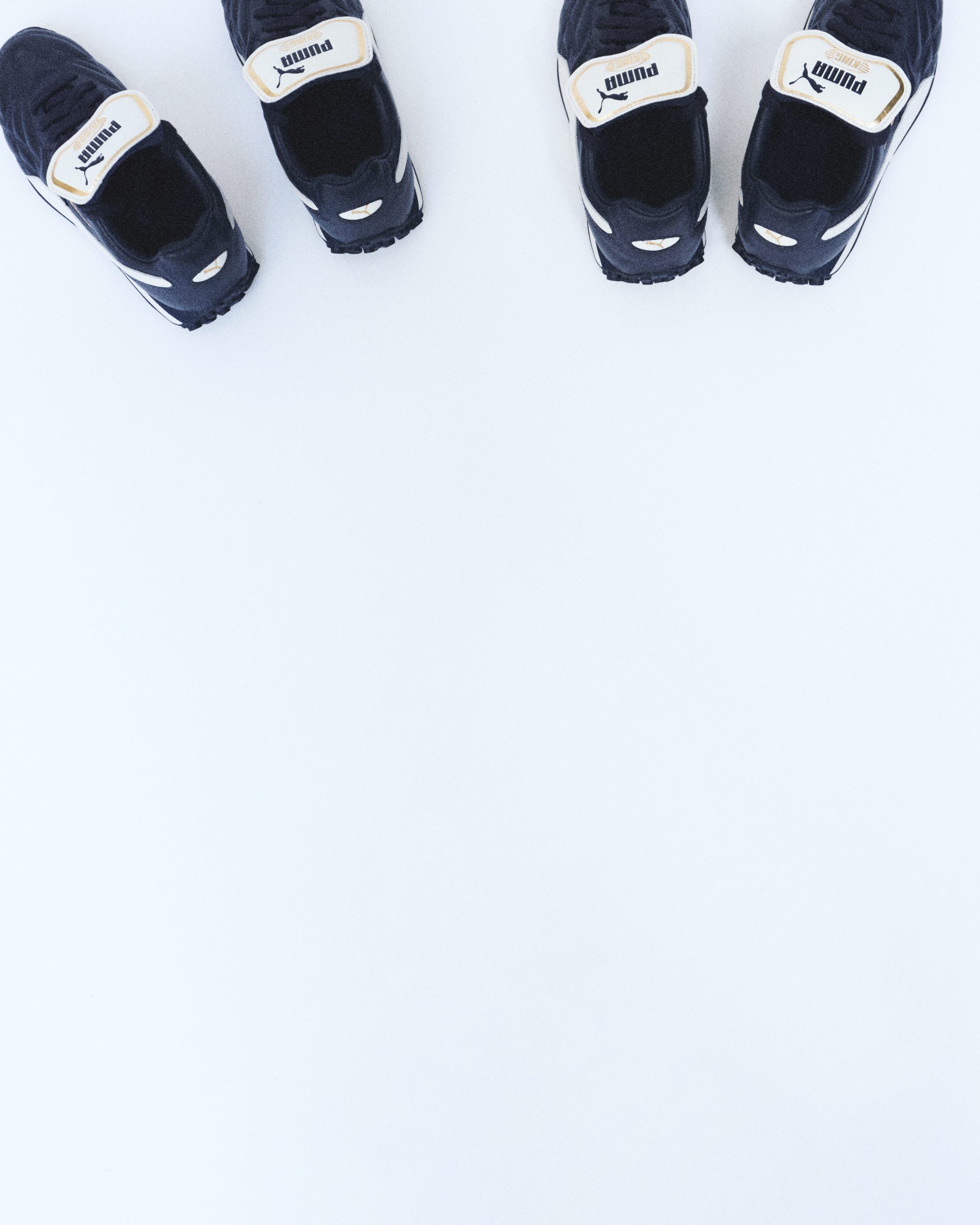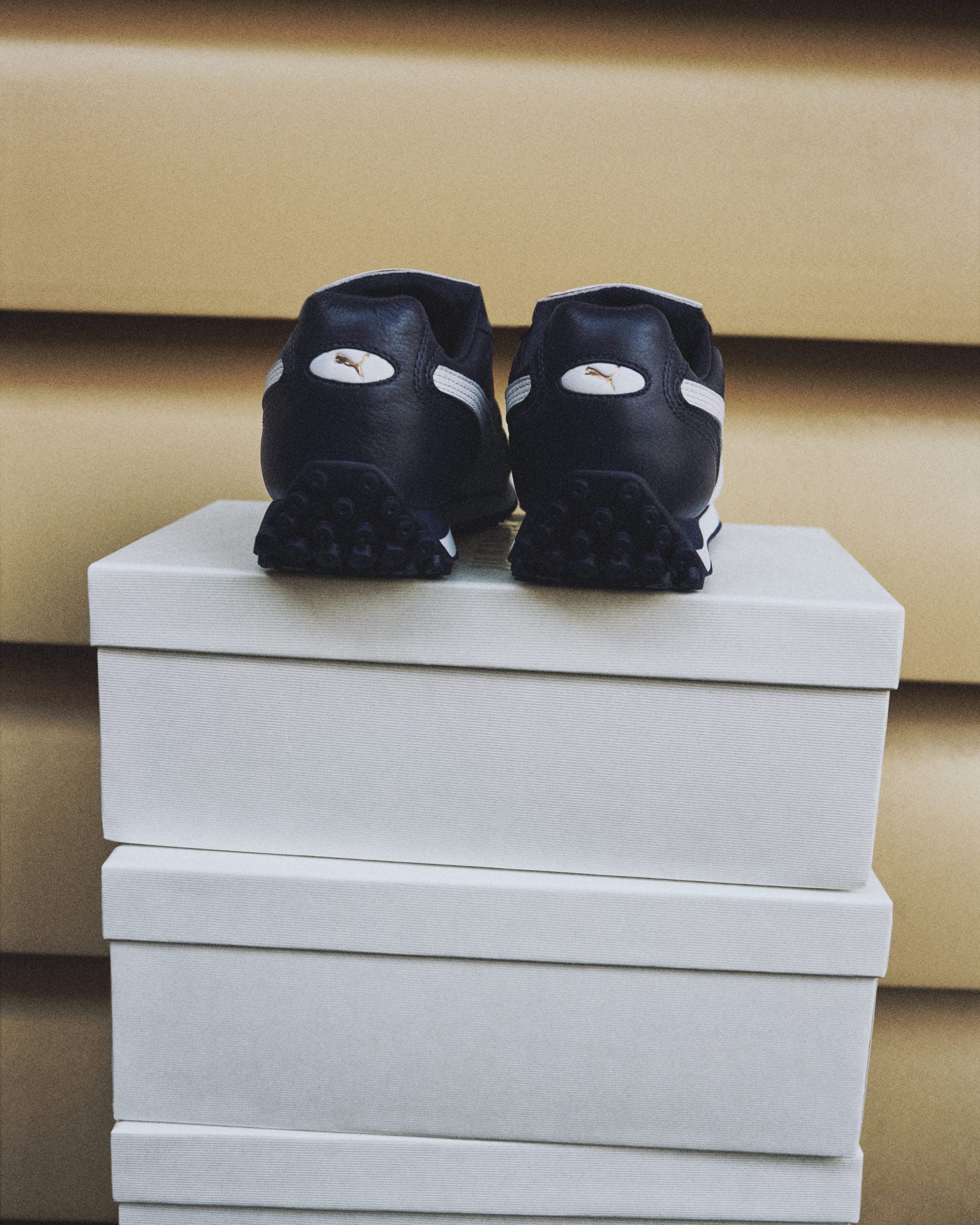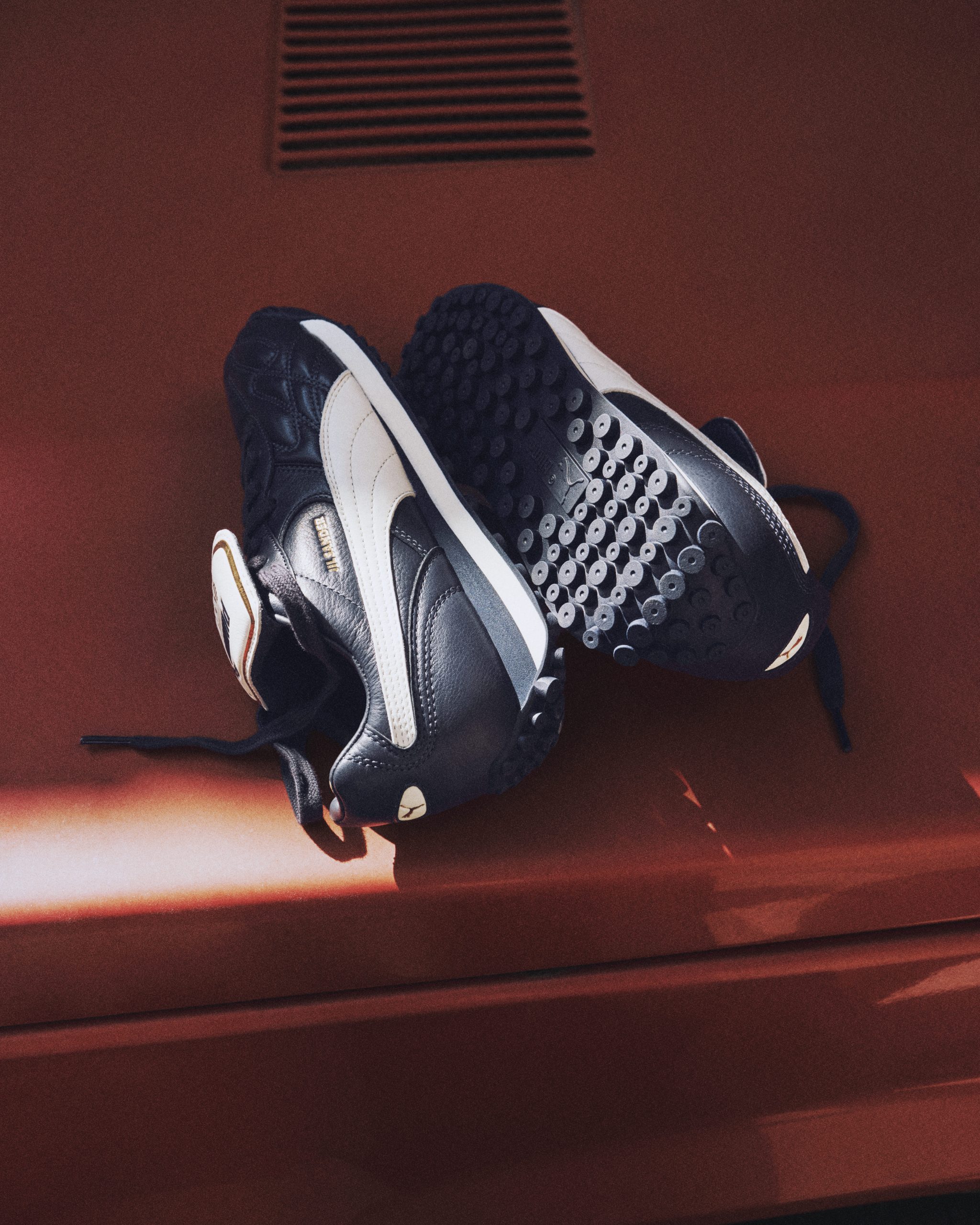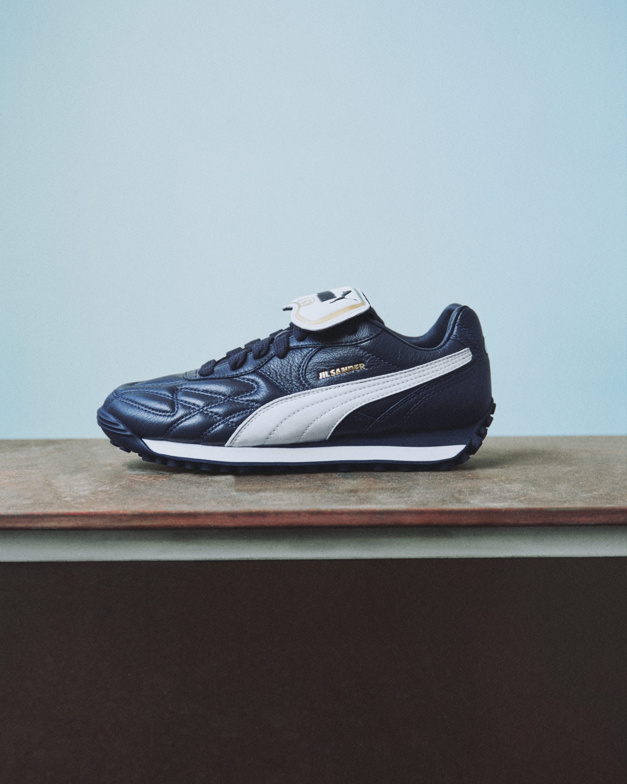 Vingt-sept ans plus tard, la conversation reprend. Sous la direction de Simone Bellotti, arrivé au printemps 2025, la maison retrouve PUMA autour du King Avanti, fille directe de la King originelle. La chaussure garde sa forme, nette, sans fioritures. Le cuir, plus dense, bleu nuit, rappelle les blouses d’atelier. Les logos se devinent : PUMA sur la languette, JIL SANDER à l’intérieur, en lettres dorées. Rien d’ostentatoire, une précision allemande.
