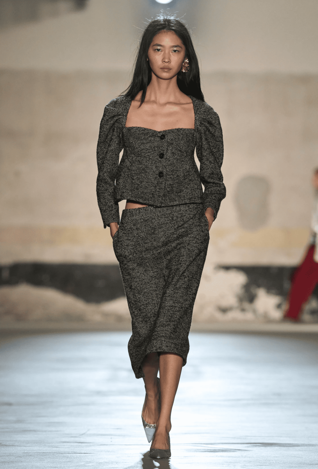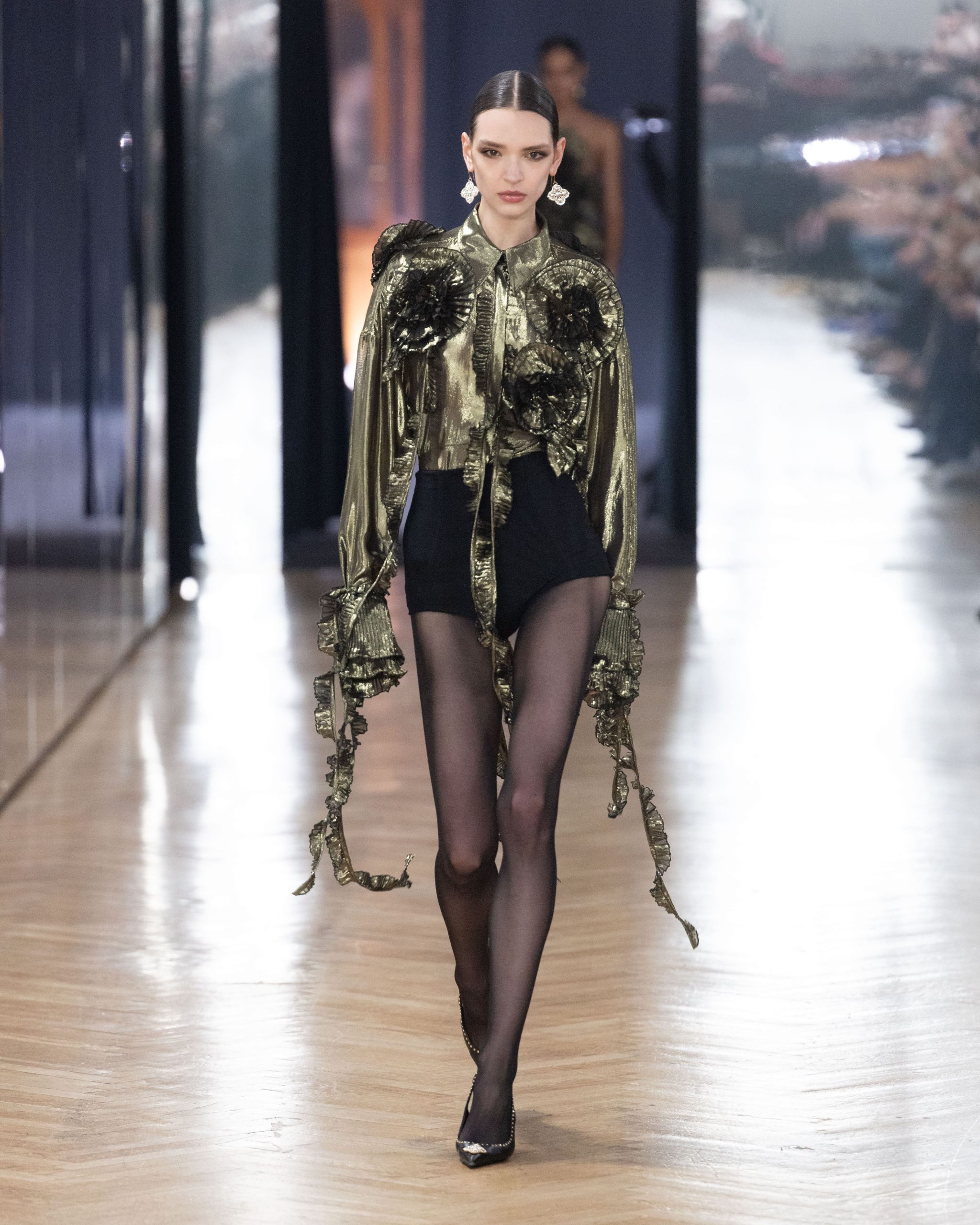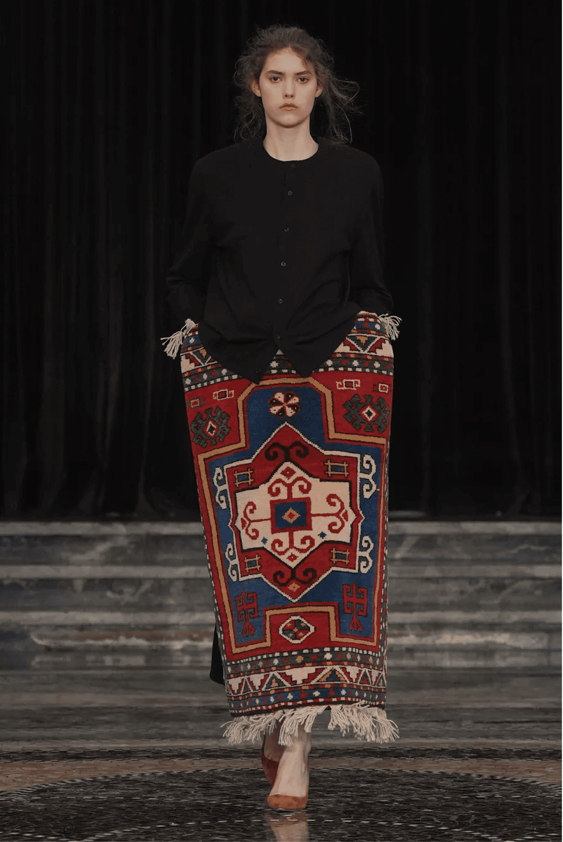 Le calendrier milanais ne propose que très peu de talents émergents, pour des raisons maintes fois expliquées. Difficile de faire entendre une voix indépendante quand les stratégies et résultats commerciaux s’imposent comme seules valeurs cardinales. Et pourtant, le Géorgien Galib Gassanoff réussit à y imposer son immense talent à travers sa griffe Institution. Mêlant savoirs faire traditionnels, textures spectaculaires et une audace sculpturale que n’aurait pas renié Cristobal Balenciaga, le finaliste du prix LVMH 2026 tisse une œuvre à son Caucase natal, et plus précisément à la région de Borchaly. Un must see absolu.