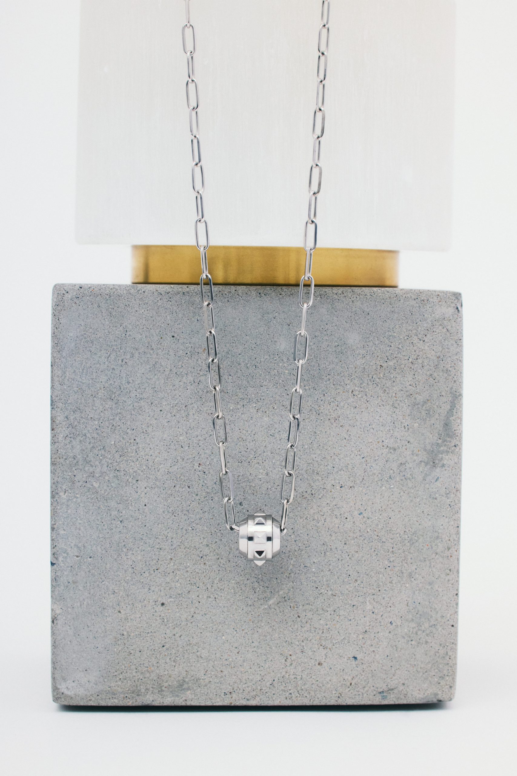 La ligne homme, développée plus récemment, prolonge cette verticalité. Même architecture, même rigueur. « Je ne pense pas en termes de genre. Je pense en termes d’attitude. » Le bijou devient axe, non accessoire. « La notion de talisman et de protection est très présente dans mes créations », explique Amélie Huynh. Ces bijoux, pensés comme des armures, répondent à une époque d’exposition constante.