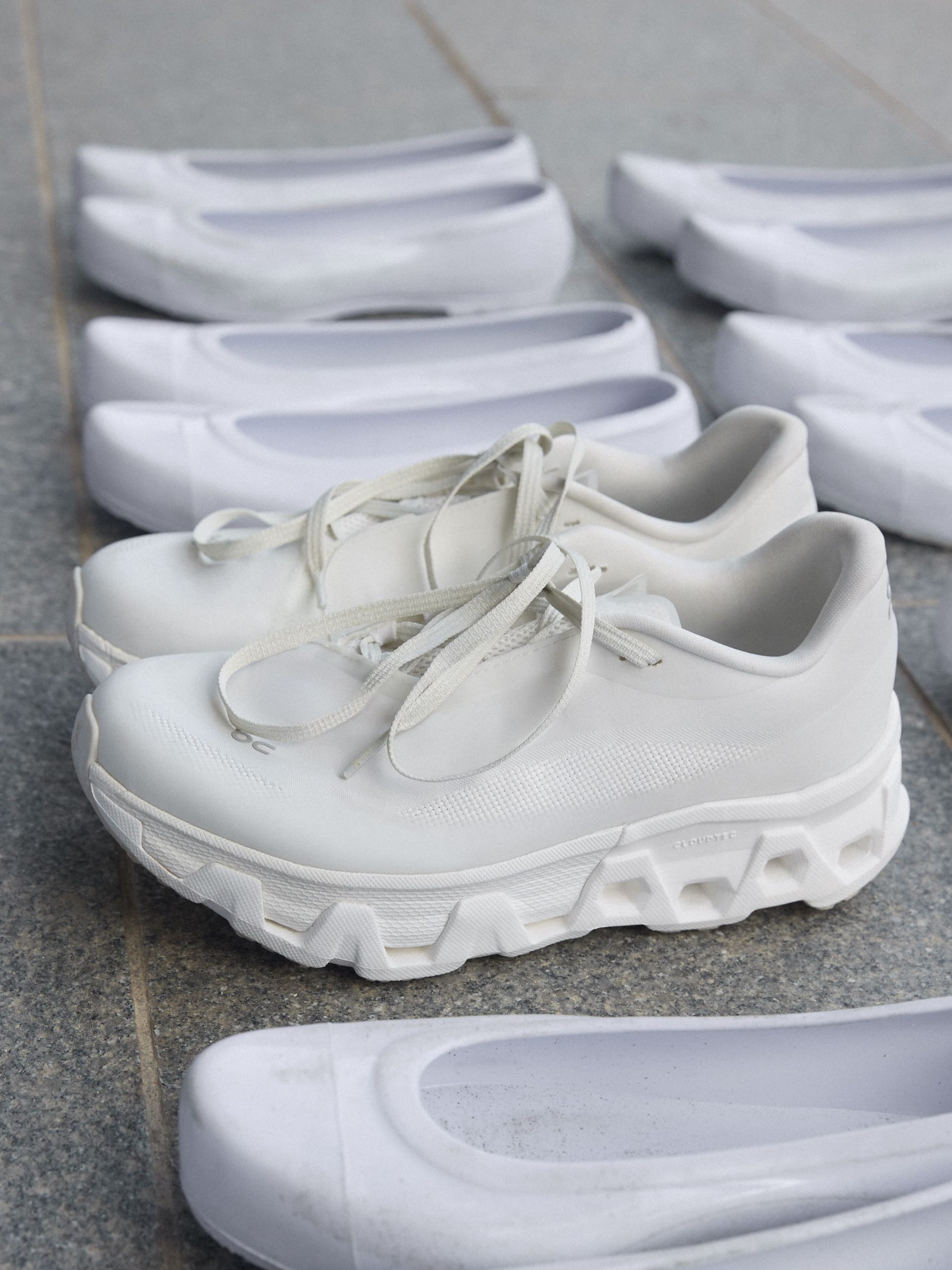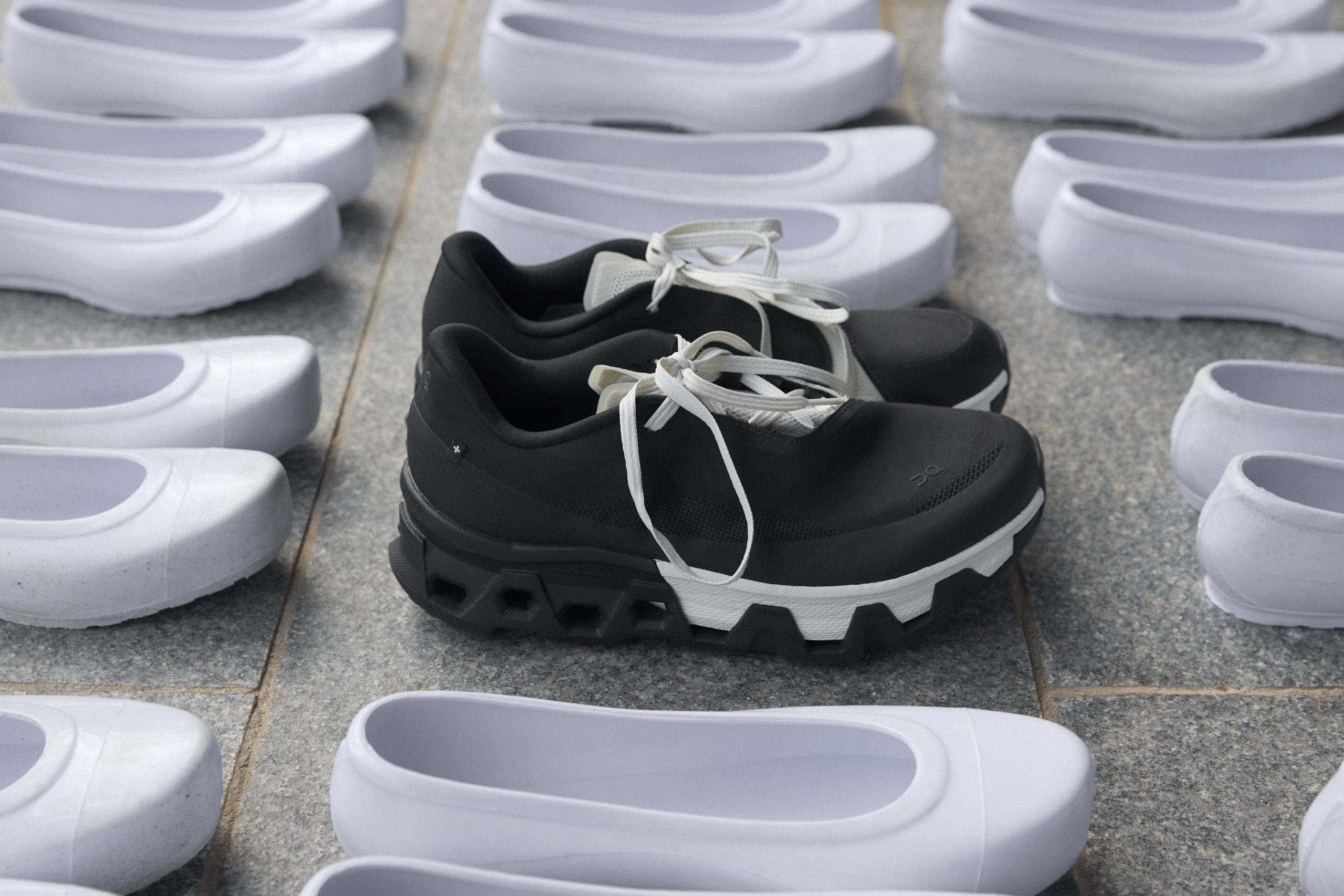 Plus loin, ON × POST ARCHIVE FACTION s’intéresse à la vitesse et au changement. La Cloudmonster Hyper PAF, silhouette futuriste au dessin affûté, réinvente la course. Chaque couture, chaque pli, chaque volume traduit le mouvement et la transformation. Trois coloris :  White / White, Black / Black, Phantom /Apollo traduisent une même idée : la vitesse n’est pas seulement physique, elle est aussi mentale.