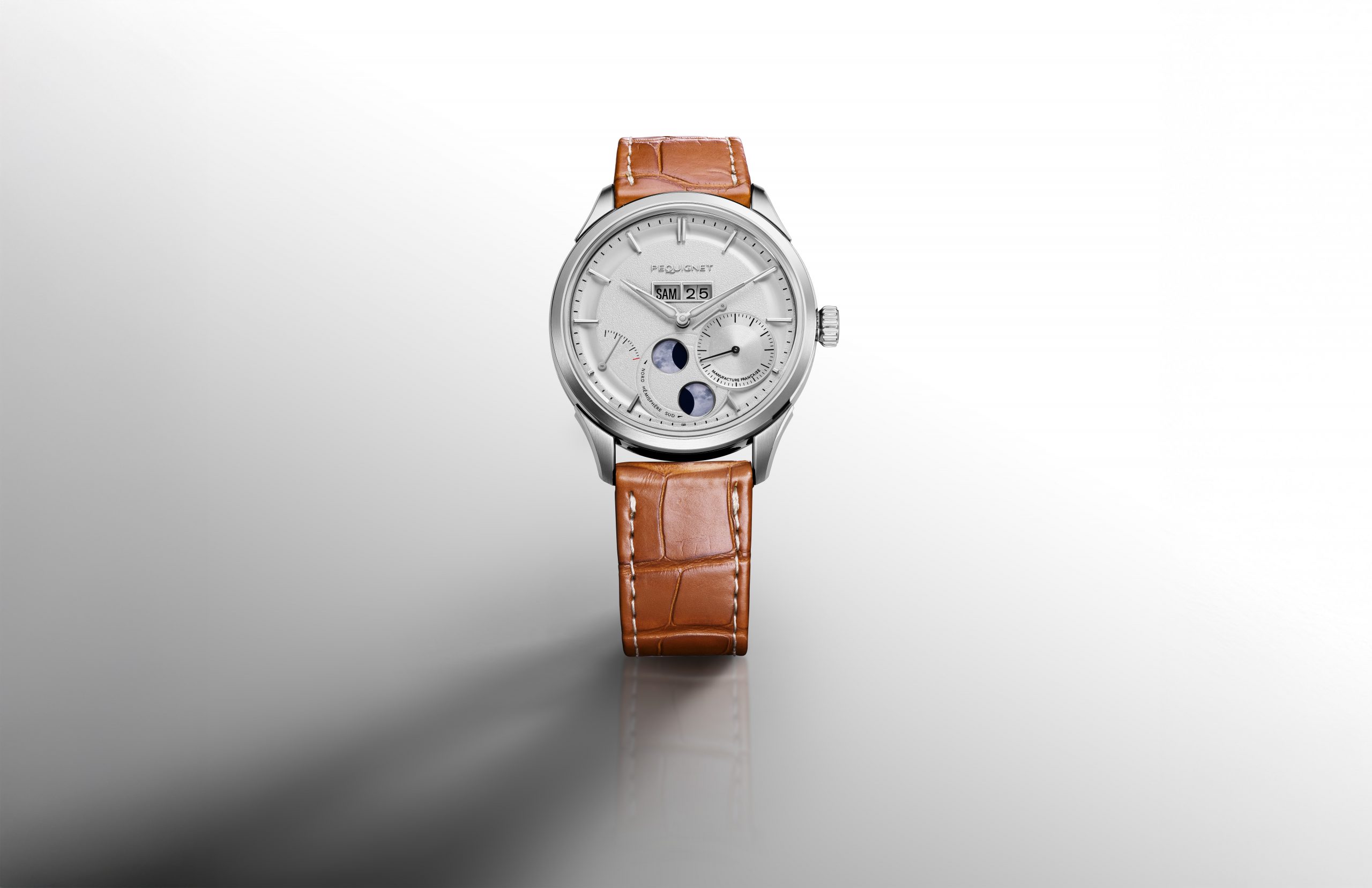 La silhouette se resserre ensuite. 36 mm seulement. Une taille inédite pour la collection, qui s’ouvre pour la première fois aux poignets les plus fins. Fine, presque fragile 8,95 mm d’épaisseur mais inattaquable. Derrière cette retenue, le Calibre Initial®. 65 heures de réserve de marche. Trois aiguilles sobres, qui disent l’essentiel avec une élégance contenue.