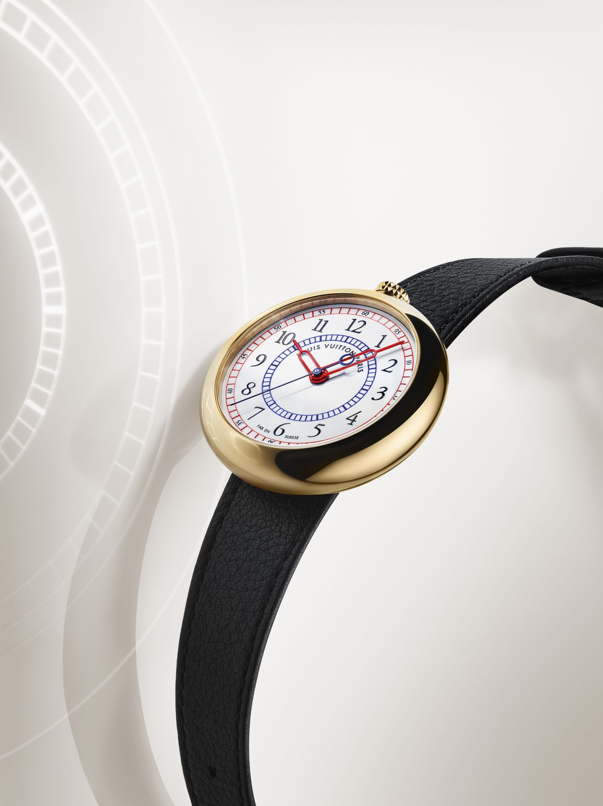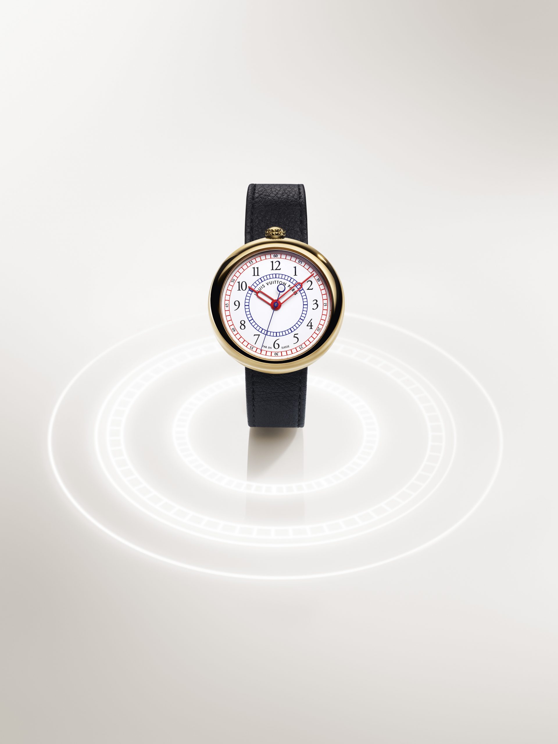 Car l’horlogerie chez Vuitton n’est pas une parenthèse récente. En 1988, la Maison confiait déjà à l’architecte italienne Gae Aulenti (la même qui venait de transformer une gare parisienne en musée d’Orsay) le soin de dessiner ses premières montres. Résultat : deux pièces avantgardistes, les LV I et LV II à la silhouette galet et à la couronne décalée à 12 heures. Leur design anticonformiste et presque architectural fit sensation. Ces jumelles de 37 millimètres chacune sont nées d’un esprit de voyage, entre passé et futur.